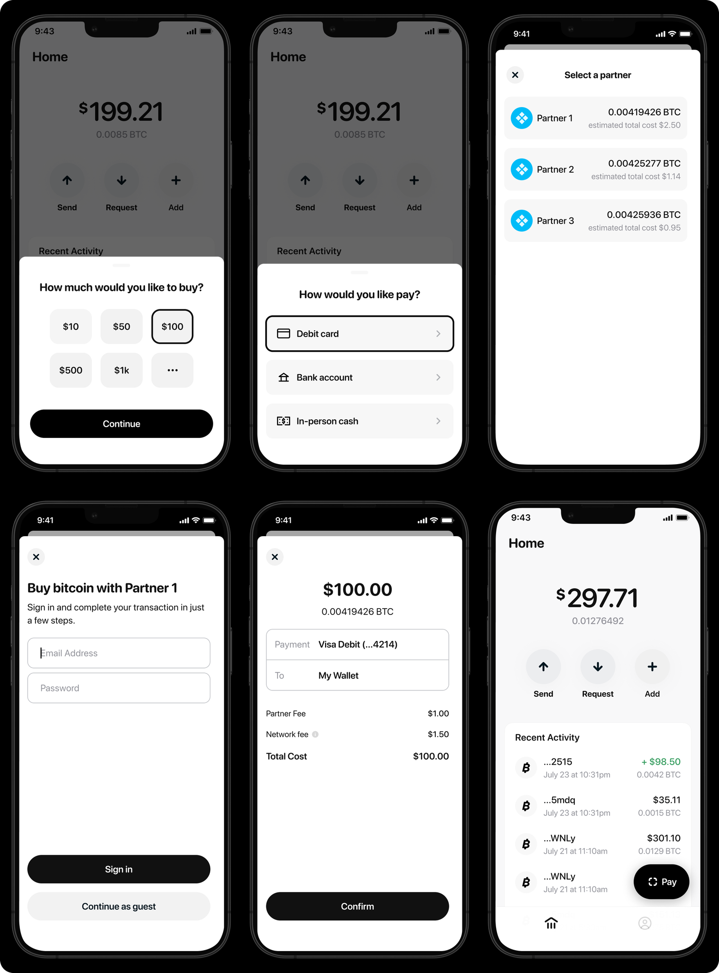 We have designed our partner integration with a customer-first approach, to make the buy and sell use case transparent and simple. This means starting from first principles about the things customers care about when they go to buy or sell bitcoin: the payment method they want to use; how much it costs; how long it takes to move the money; how easy it is to create an account; and how seamless and safe it is to access your account if you’re already an existing customer.