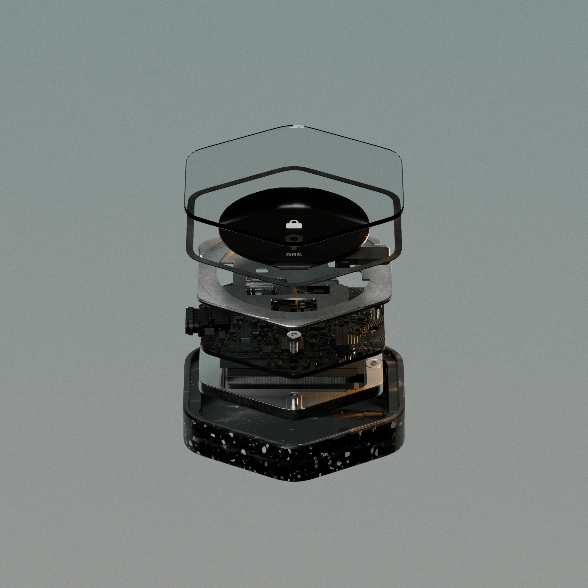 Hexagonal for the hand, not the factory. Everything a bitcoin wallet needs — nothing it doesn't.